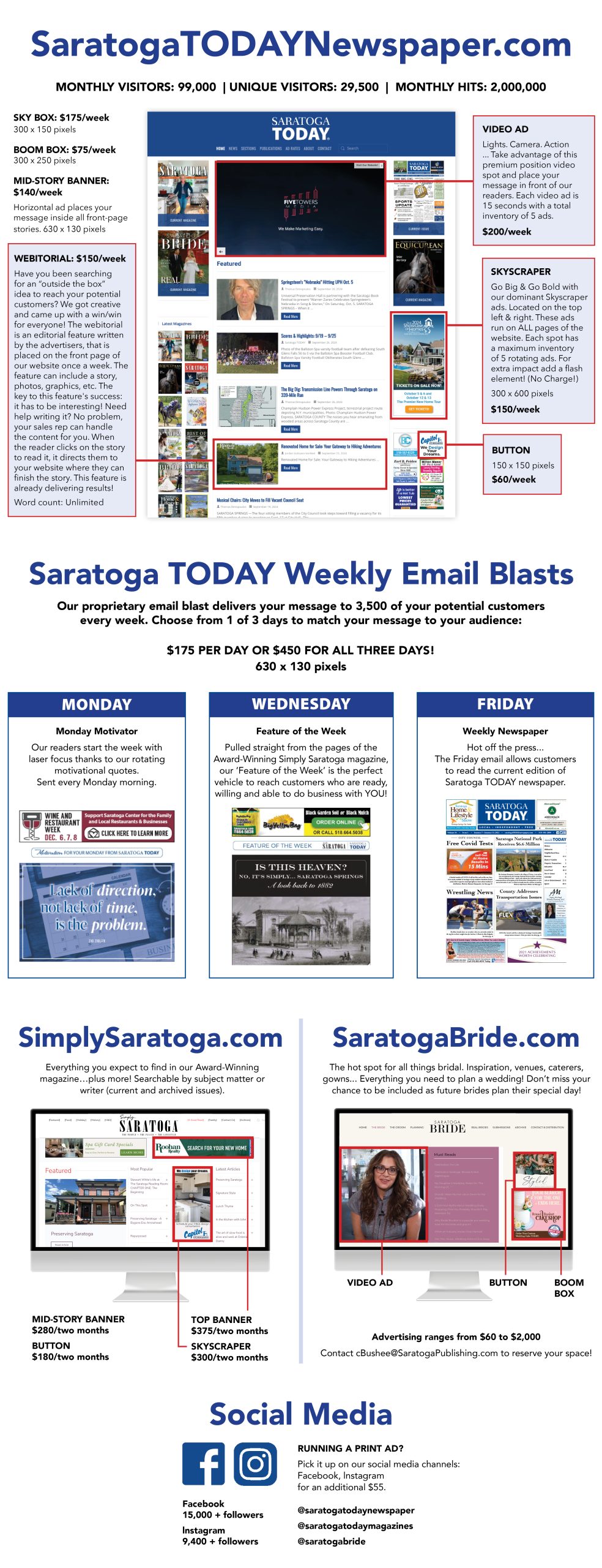 If you are looking to reach homeowners, business owners, Moms, and Dads, then Saratoga TODAY is the media of choice for Saratoga Springs.