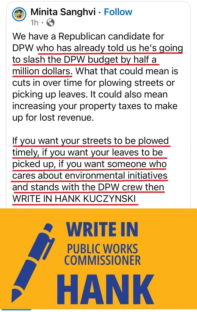 Saratoga Springs Finance Commissioner Minita Sanghvi posted a disturbing statement on her Facebook page calling for a demonstration at the New York State Supreme Court where a judge will hear arguments about contested ballots from the recent special election to fill the Commissioner of Public Works vacancy on the City Council. It’s not clear what such a demonstration is meant to achieve. It is, however, emblematic of the tactics used by the Democratic Committee which seem to be an attempt to undermine the legitimacy of the election.