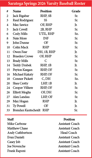 The squad lost five players from their 2025 roster: Four seniors who graduated and one player who transferred to Shenendehowa. Among the notable departures: Hunter Fales, 2025’s New York State Class C Player of the Year, is now a starter at St. John Fisher University; Ronan Rowe is at Oswego State; Ryan Gillis is at SUNY Adirondack, where early in the season he earned an impressive slash line of .289/.386/.579; and Tyler Weygand is pitching at Barton College.