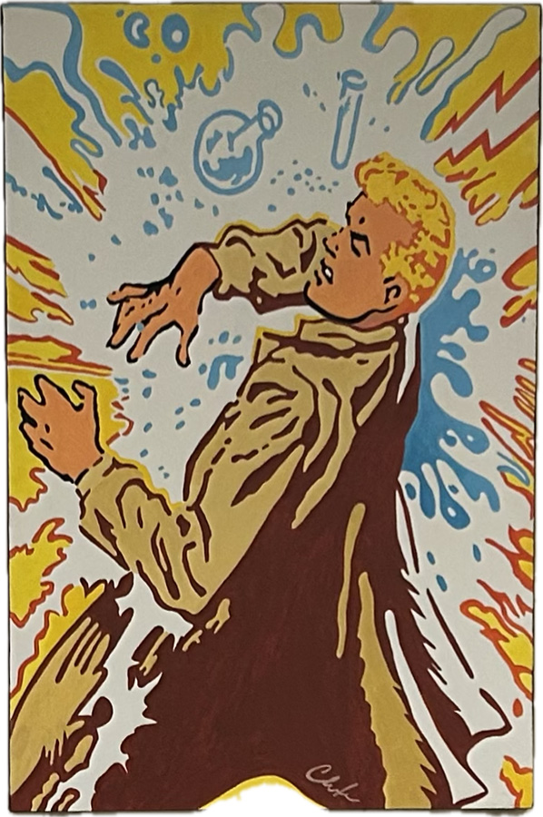 Brouillette’s pop art canvases capture the iconic heroes and villains of America Comic Art Mythology who’ve sprung from the 80+ year history of sequential art storytelling. Brilliant colors and clean design highlight the power of the art form by focusing on the stories that images tell without words.