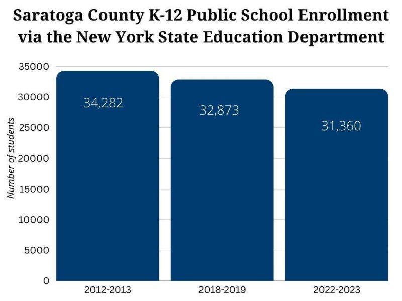 SARATOGA SPRINGS — K-12 enrollment has been steadily declining in Saratoga County for more than a decade despite overall population growth, data from the New York State Education Department shows.