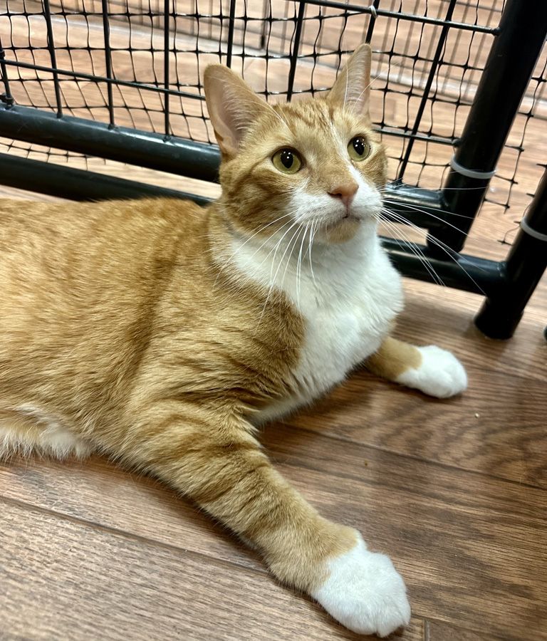 William Wallace is a big, beautiful orange and white kitty who has had some tough luck come his way. He was adopted in 2021 and unfortunately would not accept the new cat into his home in 2025, so the difficult decision was made to return him to HOPE to find a better fit for him. At first, he was confused about being back at the cat adoption center, but now he has come out of his shell and loves all of the attention he is getting. He is so sweet and loves to give headbutts. He is ready to find his forever home where he can be the only cat to spoil. It is our hope that he never has to find another home after his adoption. He deserves that and so much more!