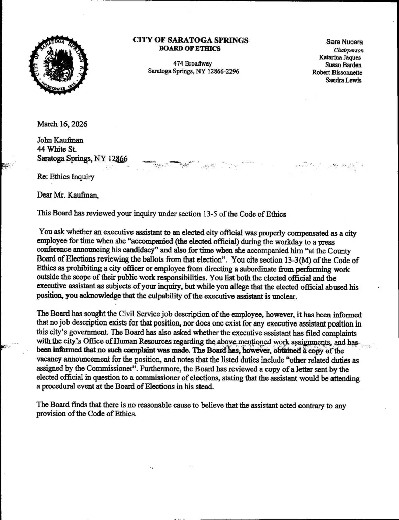 [Ms. Troisi is the Saratoga Springs Commissioner of Accounts]
