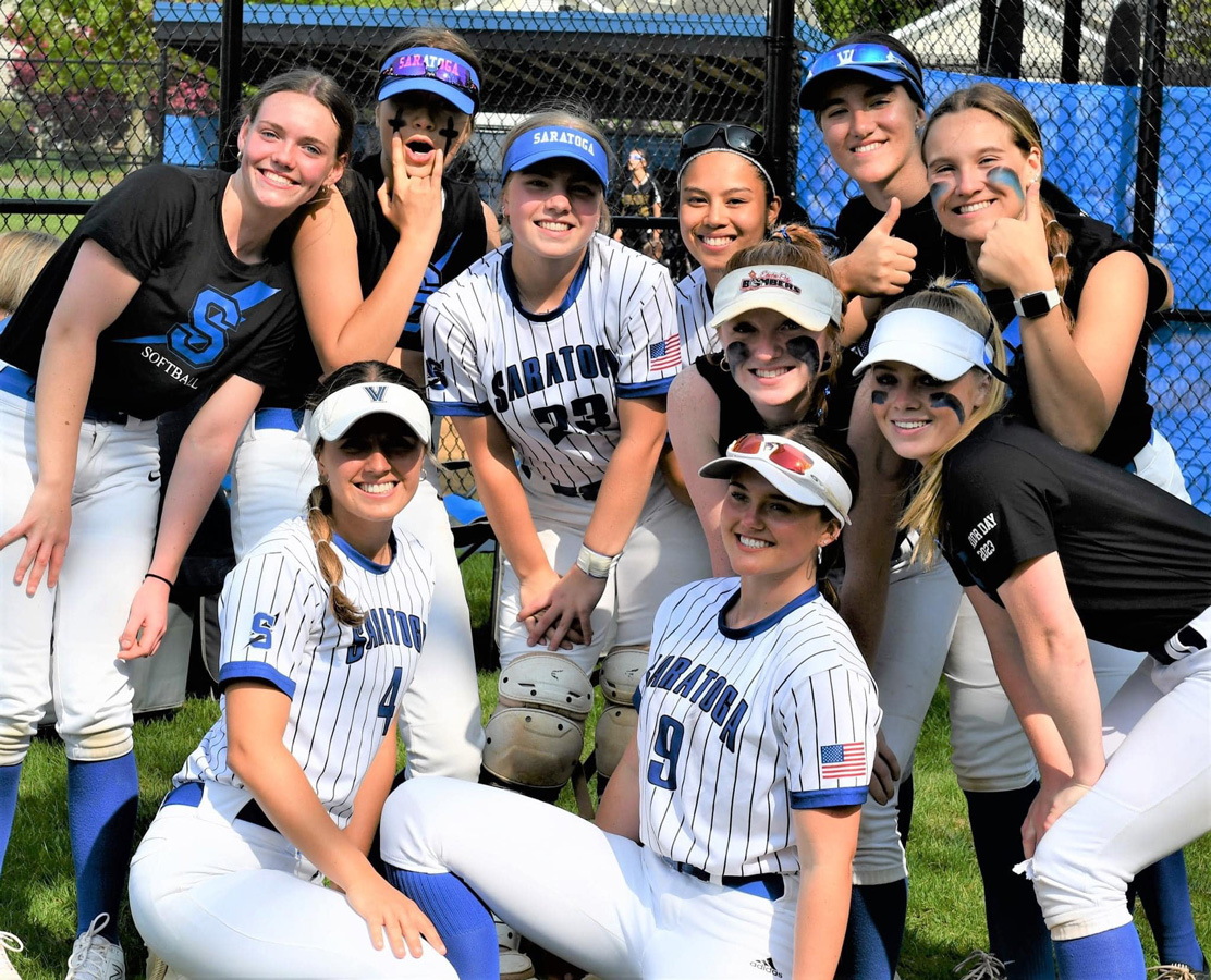Saratoga Springs varsity softball players pose for a sponsorship photo during last year’s season. Image via the Saratoga Springs High School softball Facebook page.