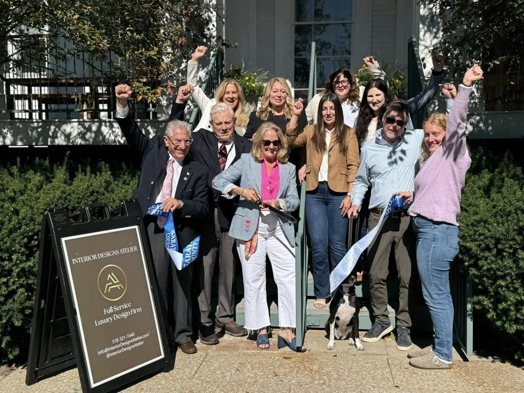 Interior Designs Atelier, a luxury interior designer shop in Saratoga Springs, recently celebrated five years in business with a ribbon cutting ceremony hosted by the Saratoga County Chamber of Commerce. The business was founded by Linda Gerace-Skinner, whose portfolio includes work in California, Florida, Massachusetts, Vermont, and Wisconsin. Photo provided by the Chamber.
