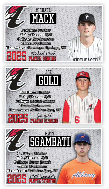 AMSTERDAM — The Amsterdam Mohawks of the Perfect Game Collegiate Baseball League (PGCBL) have signed three local ballplayers to their 2025 roster.