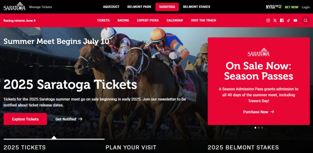 According to the New York Racing Association (NYRA), its new site features “easier navigation for players, visitors, and horsemen; a unified racing command center with live video, picks, entries, and results; and an improved mobile experience.” NYRA’s revamped Saratoga Race Course page can be viewed at: www.nyra.com/saratoga.