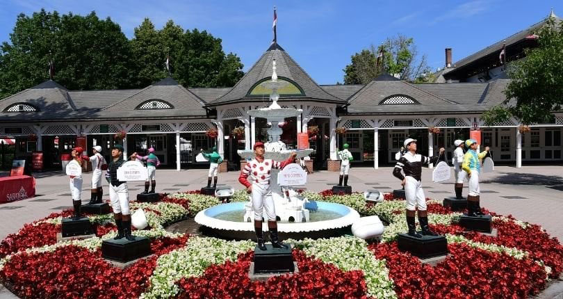 Photo of the Saratoga Race Course Marylou Whitney entrance via the New York Racing Association (NYRA).