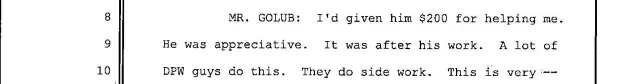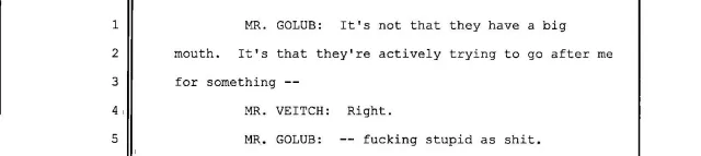 The lawyer disregards the section of the transcript in which Veitch observes that Golub could be charged with petty larceny or official misconduct.