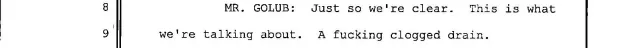 Golub claims that the plumber sent him threatening texts and emails. The implication was that the plumber was supposedly trying to extort him.