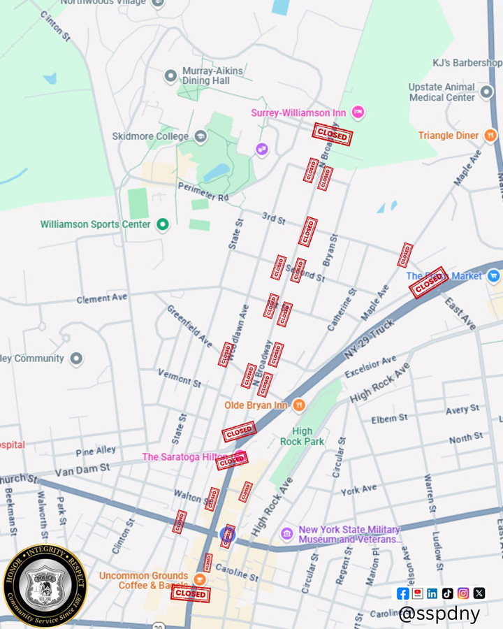 • North Broadway will be closed from the arterial/Van Dam Street to Skidmore College.
