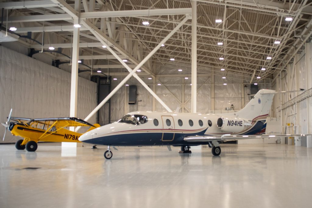 Two airplanes inside the airport’s new 20,000-square-foot hangar.